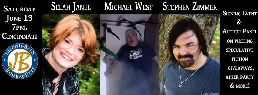 June 13, 7pm EST in Cincinnati, OH, I’ll be talking writing, speculative fiction, and the ins and outs of making deals with the dark muses storytelling with Michael West and Stephen Zimmer. We’ll also be on hand afterward if you feel like you just need to soak up our auras/want to check out our books/want to capture our essence by having us sign something. So spread the word and mark it on your calendar, because it’s going to be a fun night!
